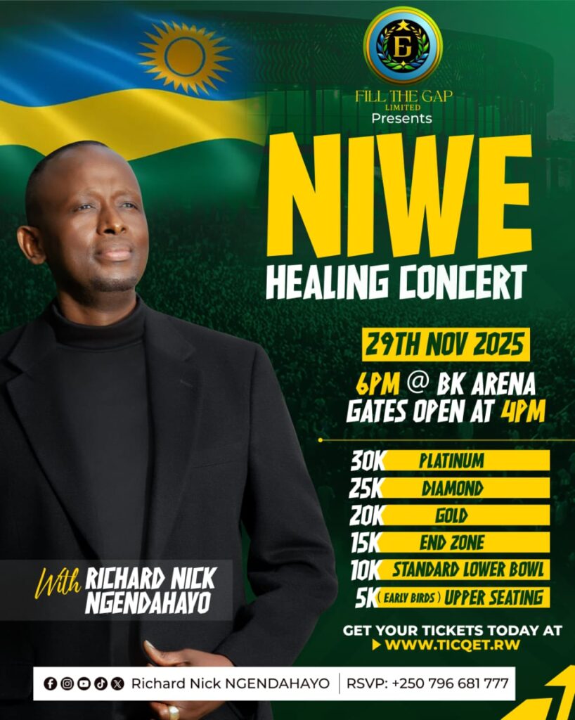 Richard Nick Ngendahayo, agiye kongera gutaramira i Kigali mu gitaramo cye cyiswe “Niwe Healing Concert” kizabera muri BK Arena ku wa 29 Ugushyingo 2025. Iki gitaramo cyari giteganyijwe kuba ku wa 23 Kanama ariko cyaje kwimurwa, kuri ubu abari kugitegura bakaba bemeje ko kigiye kuba banatangaza ibiciro by’amatike biri hagati ya 5,000 Frw na 30,000 Frw bitewe n’aho umuntu azicara.