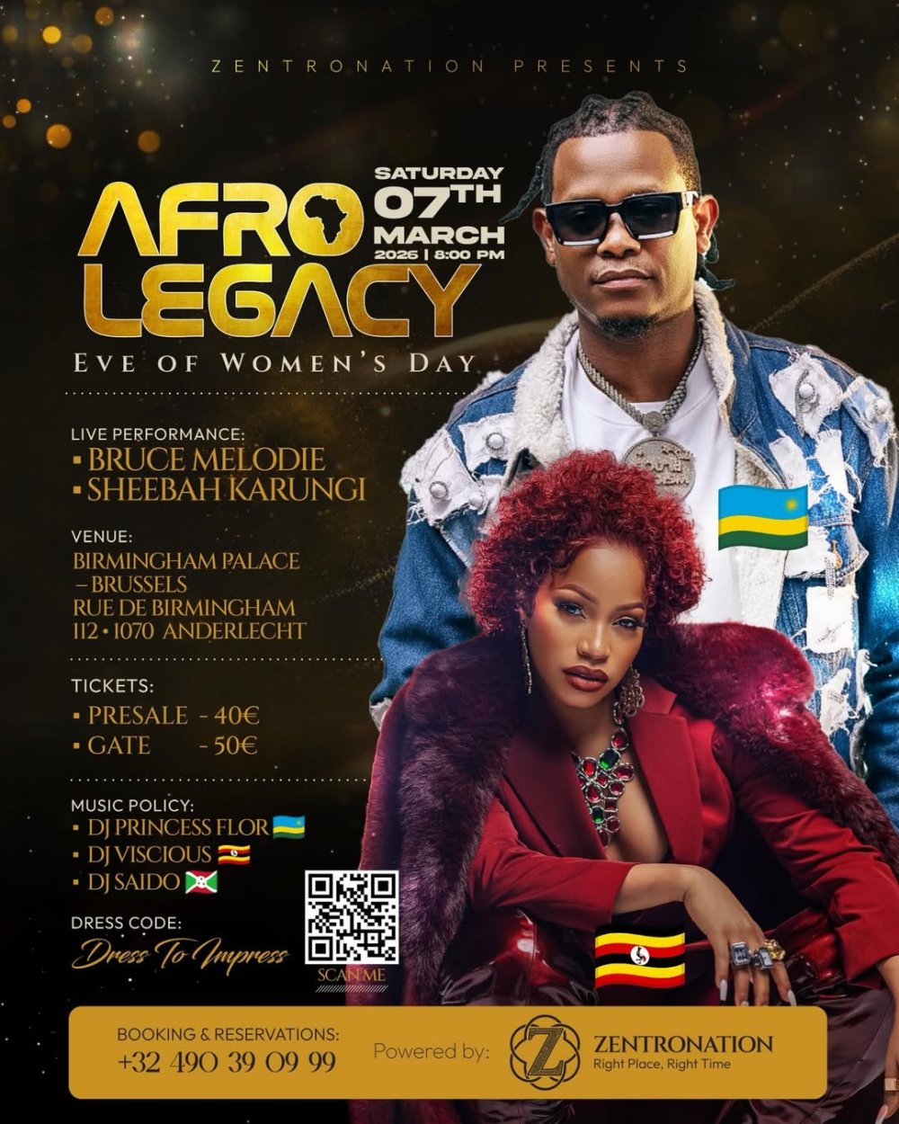 Iki gitaramo cyateguwe na sosiyete ya Zentro Nation, y’Umunyarwandakazi uzwi nka DJ Zentro utuye mu Bubiligi, kizabera mu Mujyi wa Bruxelles ahitwa Birmingham Palace 🙂 .